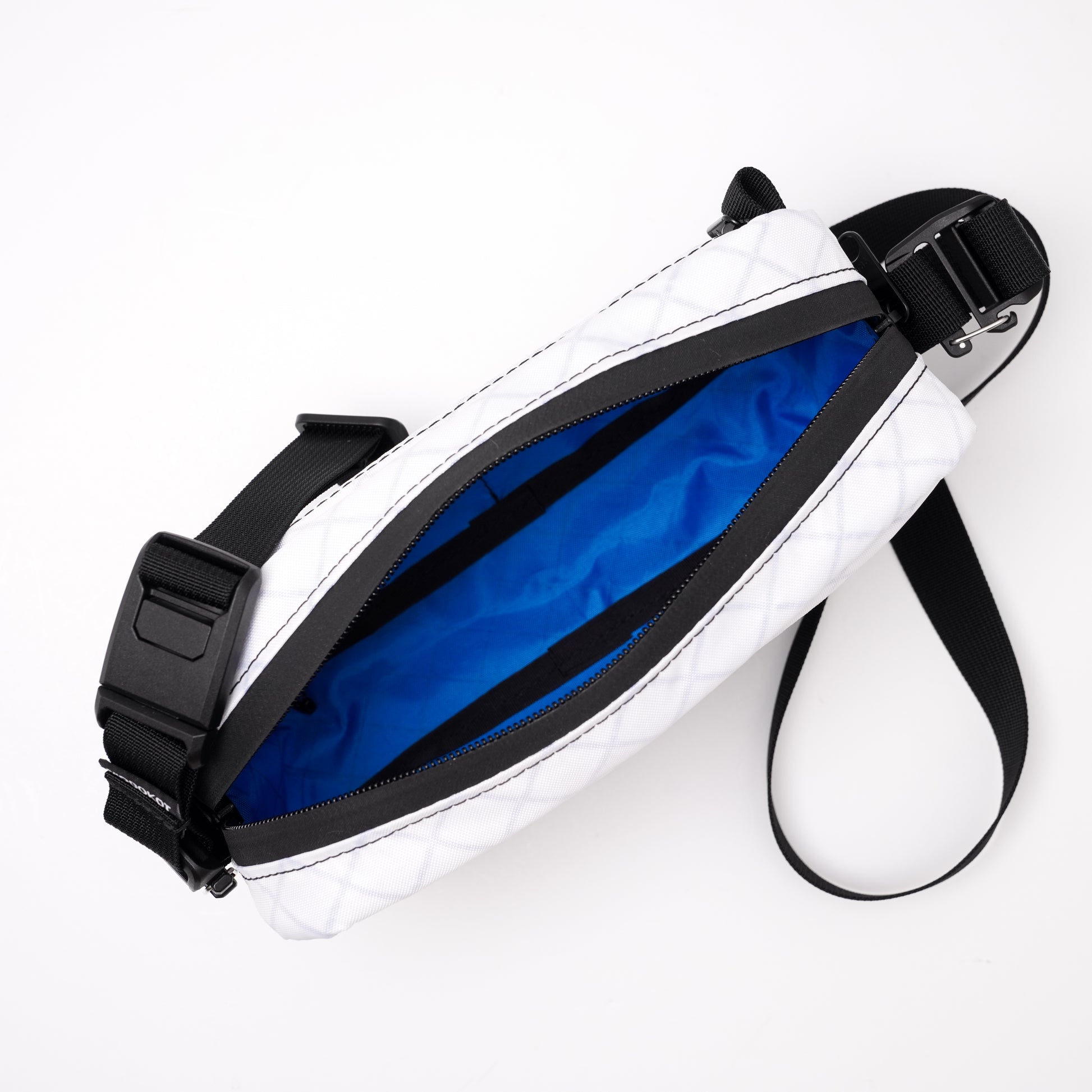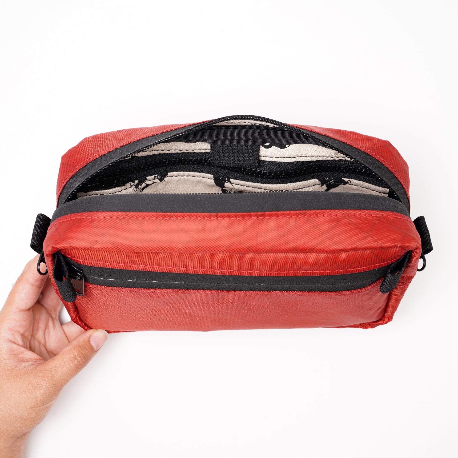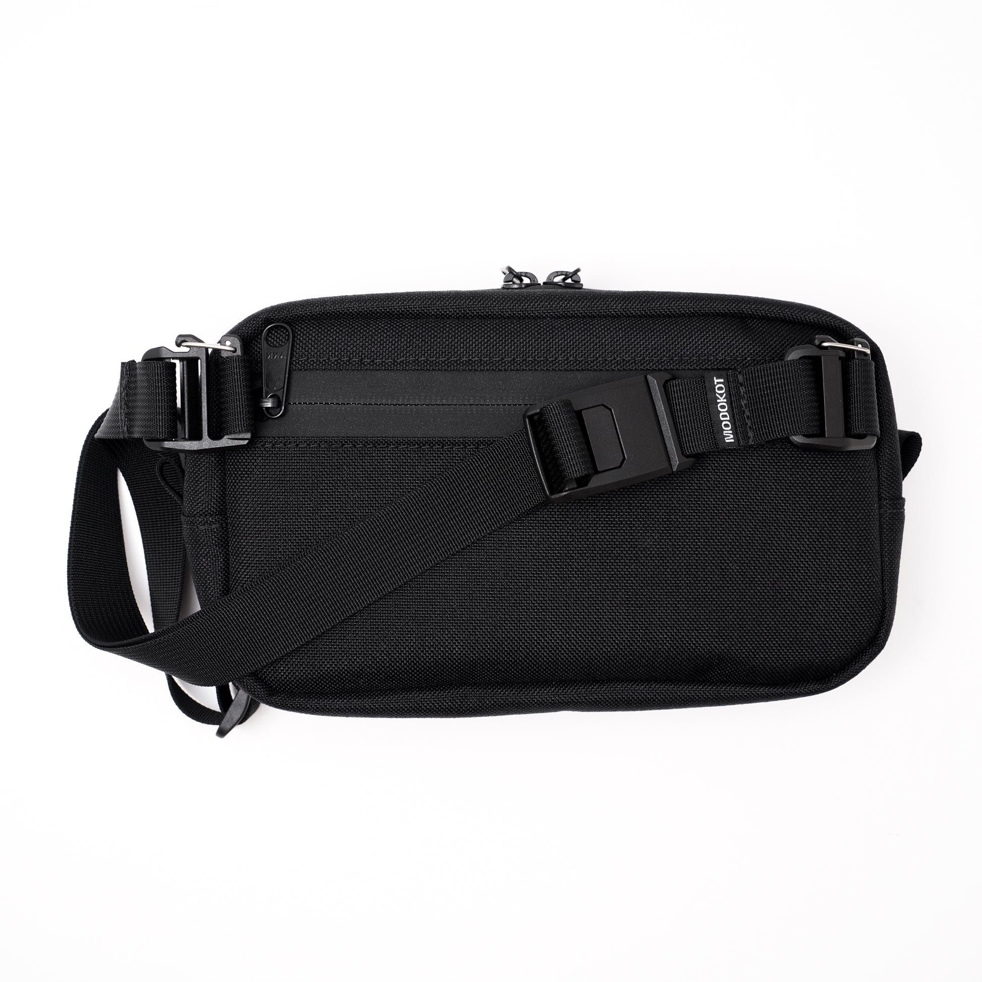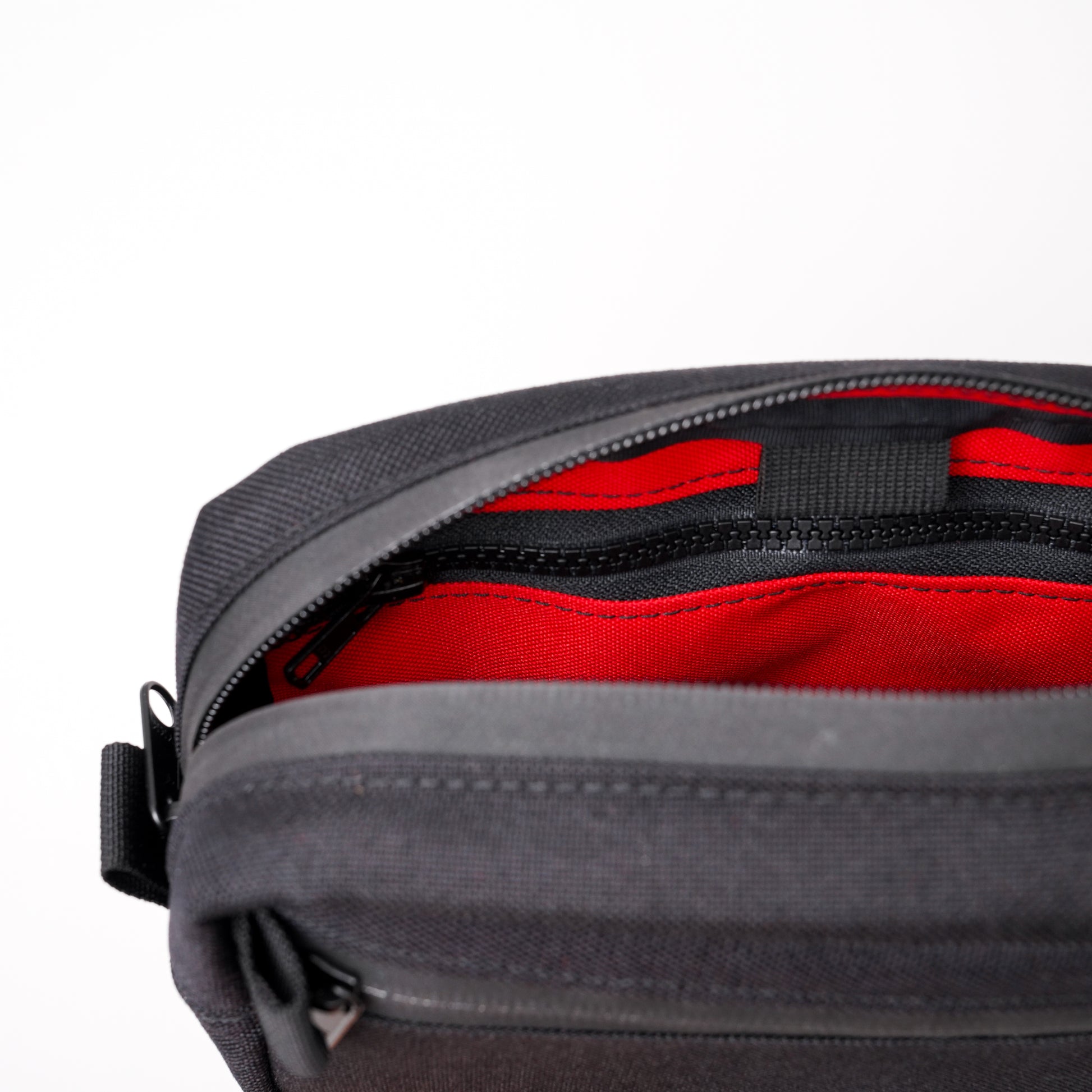 The Adapt maintains the same size and silhouette as our Bigger Sling, but created with additional zippered pockets, a removable strap, and an added pen loop. The added modifications allow you to use this bag in four ways: as a crossbody bag, a sling, waist pack, or a tech pouch. Designed and handmade with a minimal aesthetic in mind, wear it under your coat during your commute, around your waist during a morning run/afternoon hike, or around your chest when you need your essentials easily accessible. By removing the quick release strap, you're able to use the Adapt as a tech pouch while you're on the go. Easily fits a 600ml water bottle, JBL Flip 5 speaker, or Kindle.